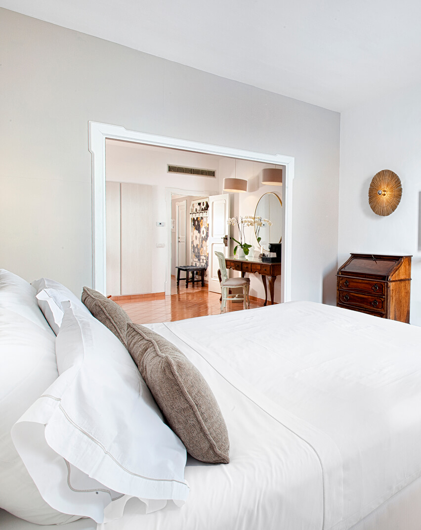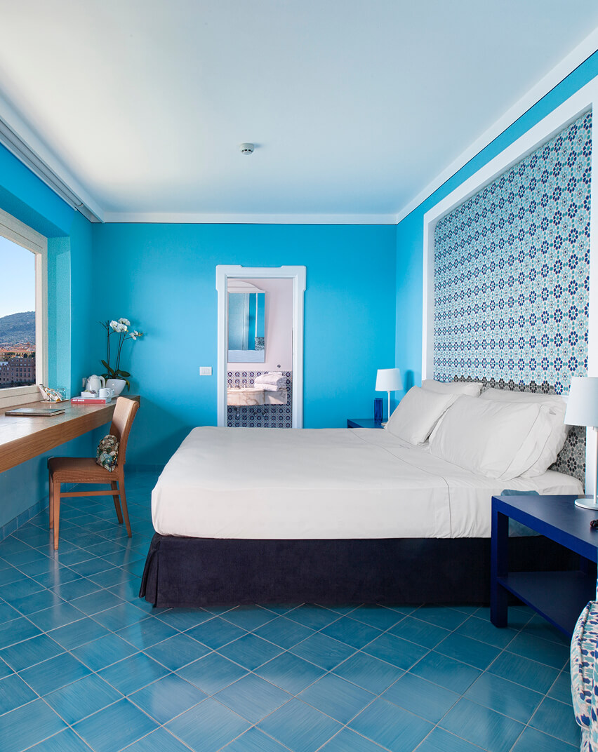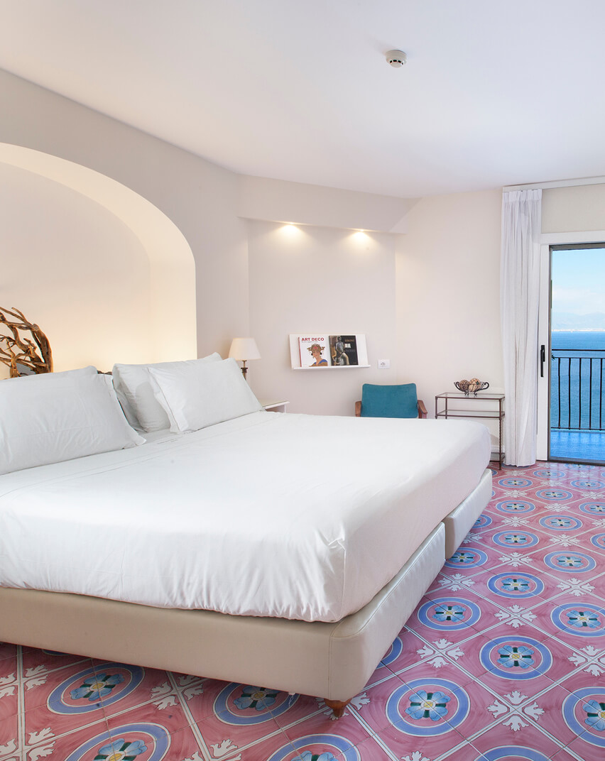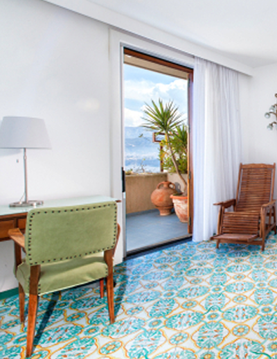 Dai balconi, tutti con vista mare sul Golfo di Napoli, si trascorrono momenti di relax godendo del meraviglioso panorama costiero, mentre lo stile classico delle camere, unito ad elementi dal design più moderno, crea un’atmosfera calda e confortevole, ideale per le giovani coppie.